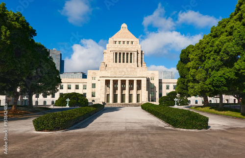 青空に映える国会議事堂(東京都千代田区永田町)