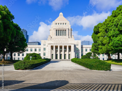 青空に映える国会議事堂(東京都千代田区永田町)
