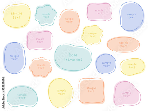 ゆるいフレームのベクターイラストセット。枠、楕円、線、曲線