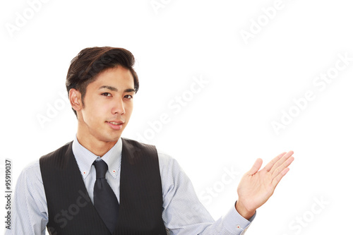 案内する男性