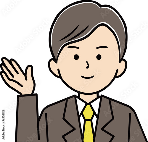 案内をするスーツ姿の男性