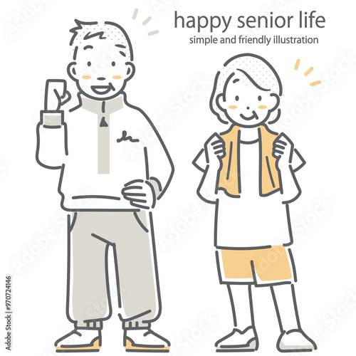 健康なシニア夫婦 シンプルでお洒落な線画イラスト