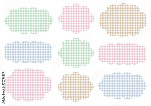 水彩風 チェック柄 雲形 ふきだし セット