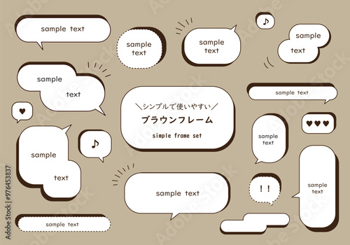 ブラウンのフレーム&ふきだしセット
