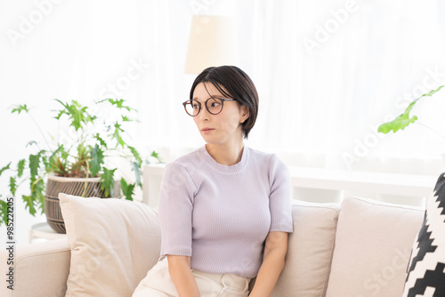 woman, smile, happy, relax, break, cosmetic, beauty, couch, glasses, light, casual, girl, woman, portrait, lifestyle, beauty, window, room, japanese, young, people, lively, sweet, pretty, asian, image, fun, smile, smile, happy, 30s