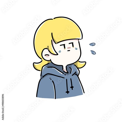泣いている女性のイラスト(涙付)②