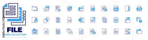 File icon collection. Bold line style. Duotone colors. psd file, files, file, obj, add file, movie file, audio file, open, file upload, image file