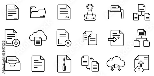"Files Line Icon Representing Digital and Physical Files, Organization, and Data Management in a Clean and Structured Linear Design"