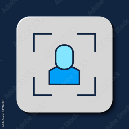 Filled outline Camera focus frame line icon isolated on blue background. Vector