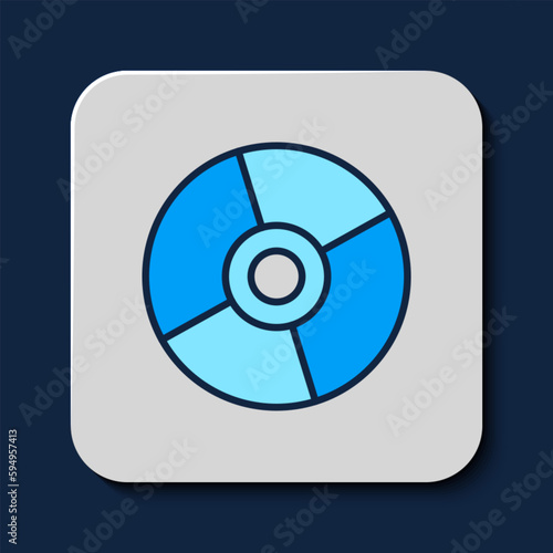 Filled outline CD or DVD disk icon isolated on blue background. Compact disc sign. Vector