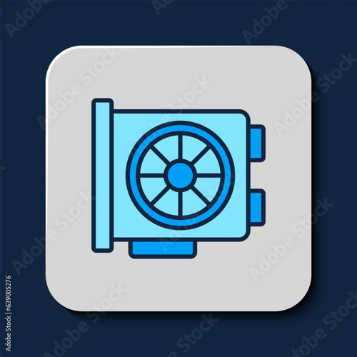 Filled outline Video graphic card icon isolated on blue background. Vector