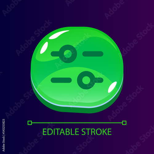 Filters setup glossy ui button with linear icon. Control panel. Choose functions. Isolated user interface element for web, mobile, video game design. Editable stroke. Arial font used