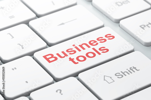 Finance concept: Business Tools on computer keyboard background