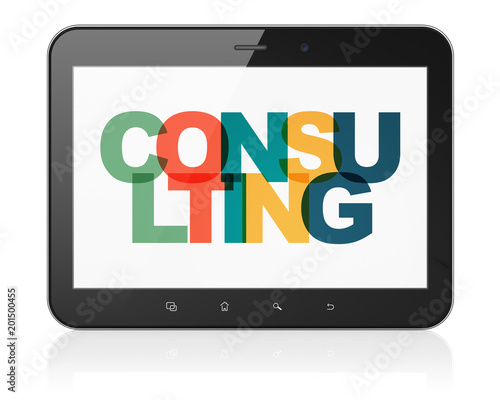 Finance concept: Tablet Computer with Painted multicolor text Consulting on display, 3D rendering