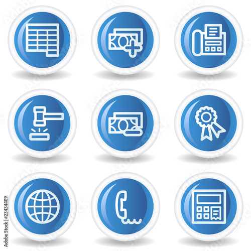 Finance web icons set 2, blue glossy circle buttons