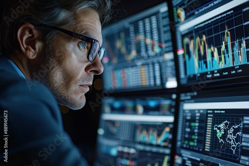 Financial analyst using advanced software to create financial models on a high-resolution computer screen The screen displays complex graphs and data points, highlighting the technical skills