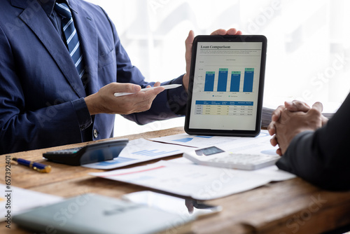 Financial Business team analyze the graph of the company's performance to create profits and growth, Market research reports and income statistics, Financial and Accounting concept.