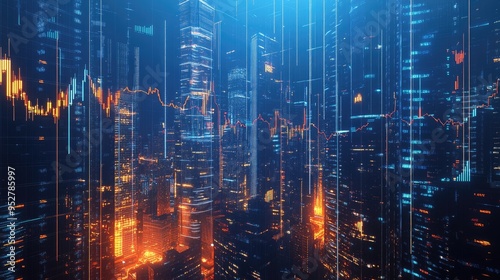 Financial chart, skyscrapers. Generative AI