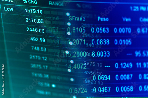 Financial data on a monitor. Finance data concept.