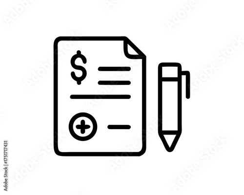 Financial document with dollar sign and pen