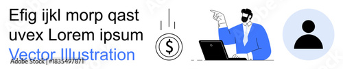 Financial growth, online transactions, business ideas, income generation, remote work, digital economy. Person gestures towards a laptop with a dollar symbol. Financial growth and online transactions
