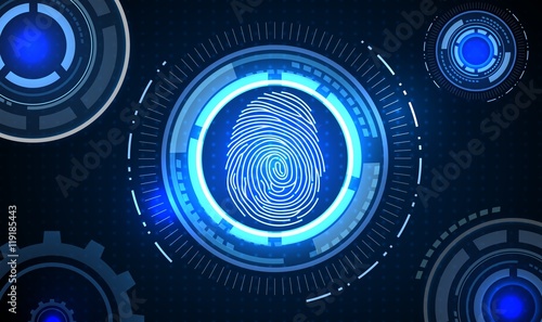 Fingerprint with concept blue abstract technology background