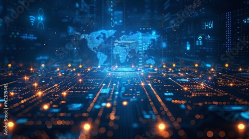 fintech icon on abstract financial technology background represents Blockchain and Fintech Investment Financial Internet Technology Concept.
