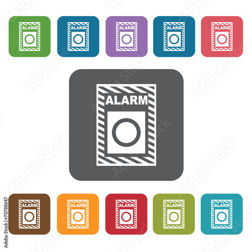 Fire alarm icon. Fire fighting sign symbol icon set. Rectangle c