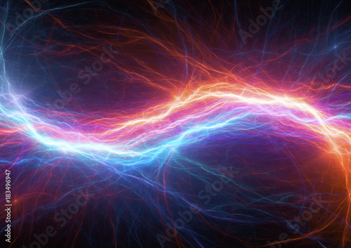 Fire and ice plasma lightning bolt. Electrical energy background