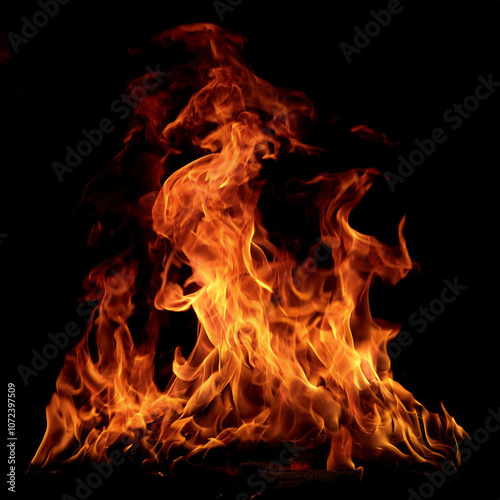 Fire flames, isolated on a dark black