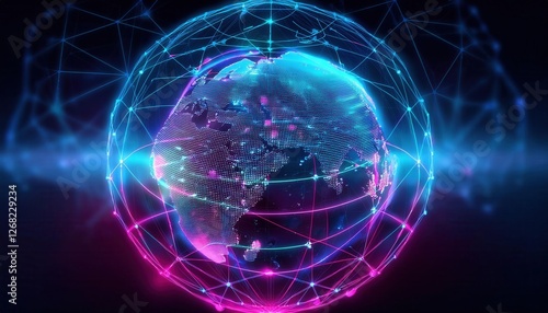 Firefly Neon Wireframe Globe with Floating Data Points and Connections