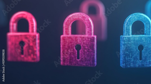 Firewalls and cybersecurity protect against security risks. Futuristic Locks Representing Privacy and Security Technologies