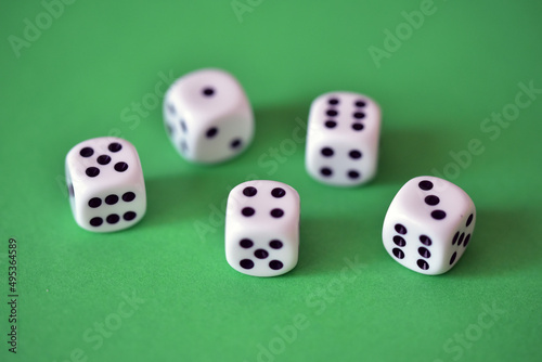 five dice on green