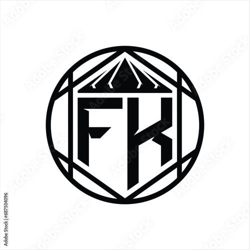 FK Letter Logo monogram hexagon slice crown sharp shield shape isolated circle abstract style design