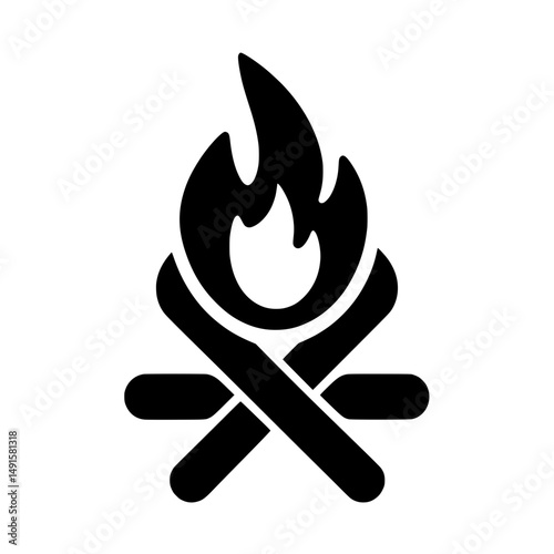 Flat Black Bold Vector Illustration of a Campfire Icon