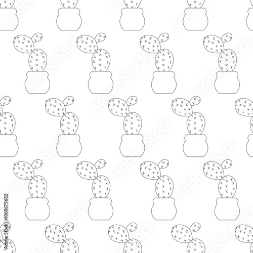 Flat cactus in a pot in doodle style. Simple seamless pattern. Vector illustration.