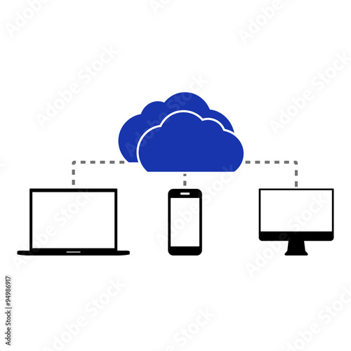Flat cloud computing background. Data storage network technology.