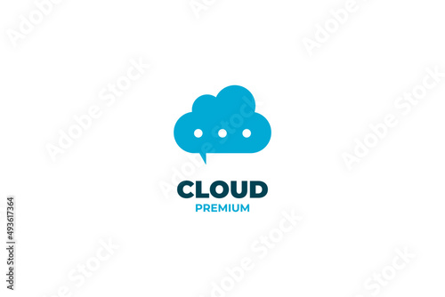 Flat cloud with speech bubble logo design vector template