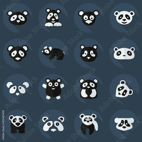 Flat concept, set modern design with shadow pandas