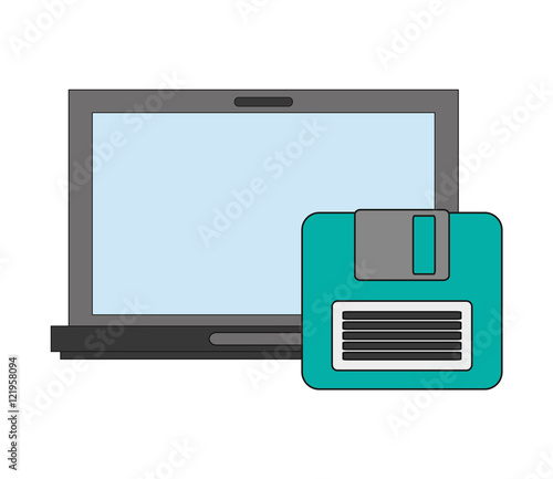 flat design computer and floppy disk icon vector illustration
