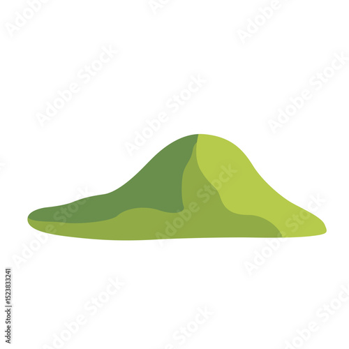 Flat design of a small green hill, ideal for nature-themed projects, outdoor settings, and environmental designs representing peaceful, natural terrain.