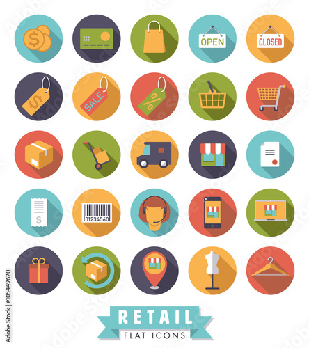Flat Design Shopping and Retail Round Icon Set