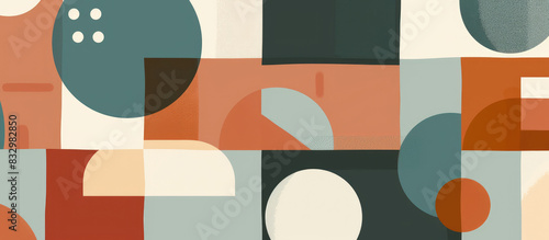 Flat illustration of an abstract composition with overlapping circles and squares in earthy tones, arranged to form geometric shapes