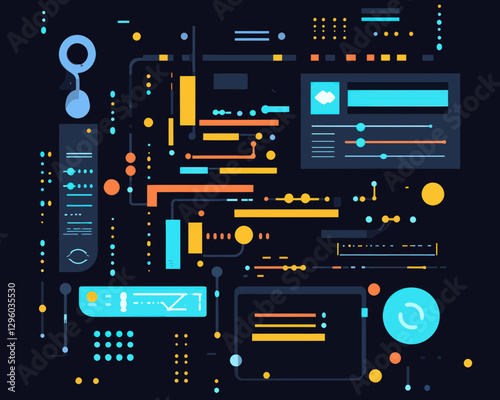 Flat Minimalist SVG Vector of API Interfacing for Software Development with Programmer Coding Connection