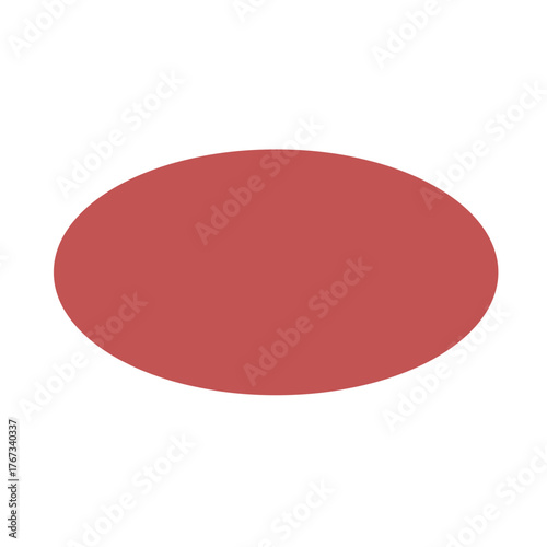 Flat red oval 2D vector shape, smooth geometric form for buttons, frames, or soft design elements in user interface projects.