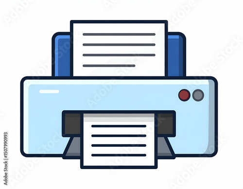 Flat Vector Icon Printer Printing Document - Isolated White Background