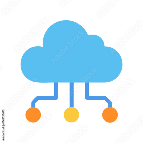 Flat vector illustration of a cloud connected to several points on black background
