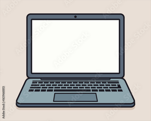 Flat Vector Illustration of a Laptop Computer with Blank Screen