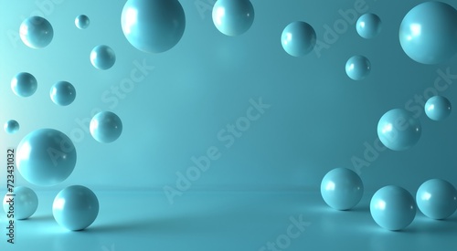 Floating spheres 3d rendering empty space for product show.
