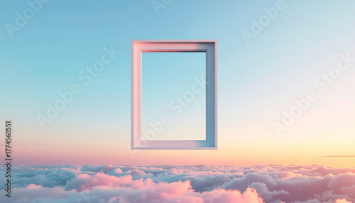 Floating window frame over calming gradient – pastel minimal